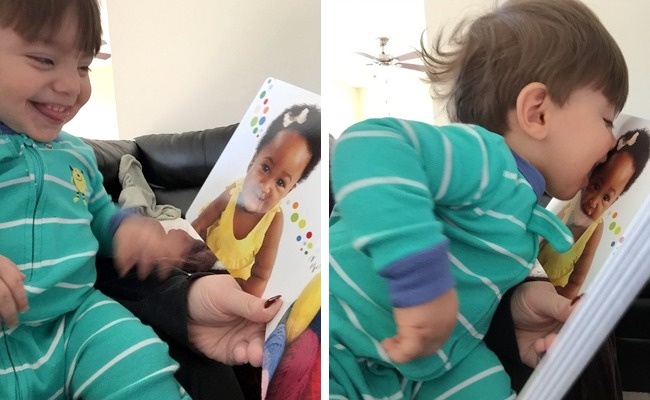 Мальчик обожает девочку из книжки и целует ее каждый раз, когда видит.