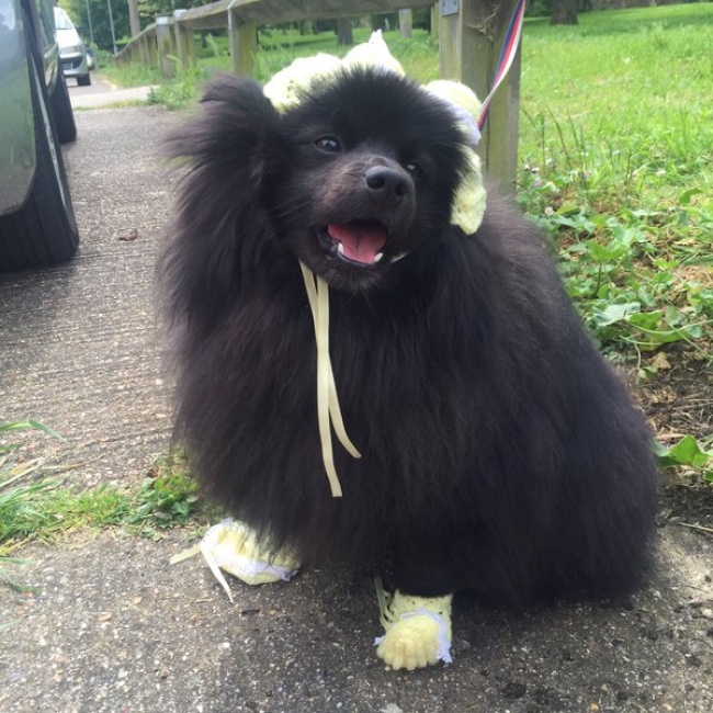 Девушка надела на любимую собаку свои детские вещи, которые ее мама приберегла для будущего внука.