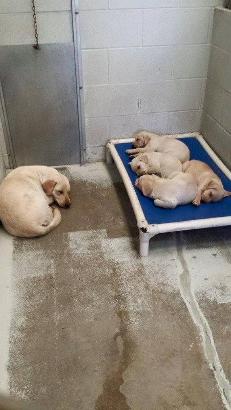 Мама отдала щенятам лучшее место для сна.