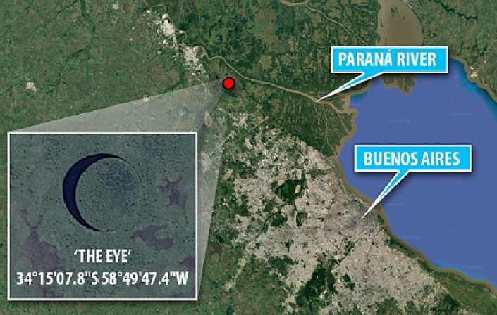 Сам остров расположен в дельте болотистой реки Парана, Аргентина. С первого раза Ричарду и его коллегам не удалось добраться до острова - помешала чересчур болотистая местность. Во время второго захода на вертолете экспедиторы смогли увидеть необычное место.