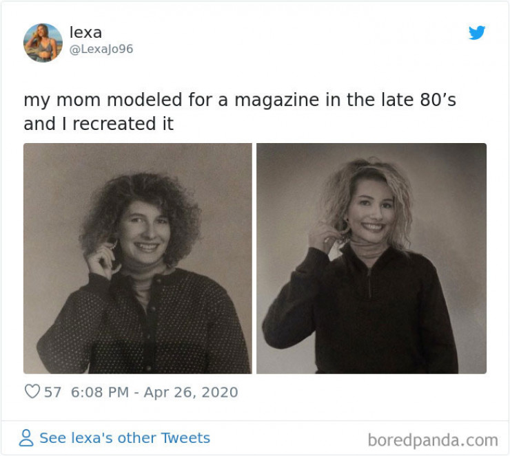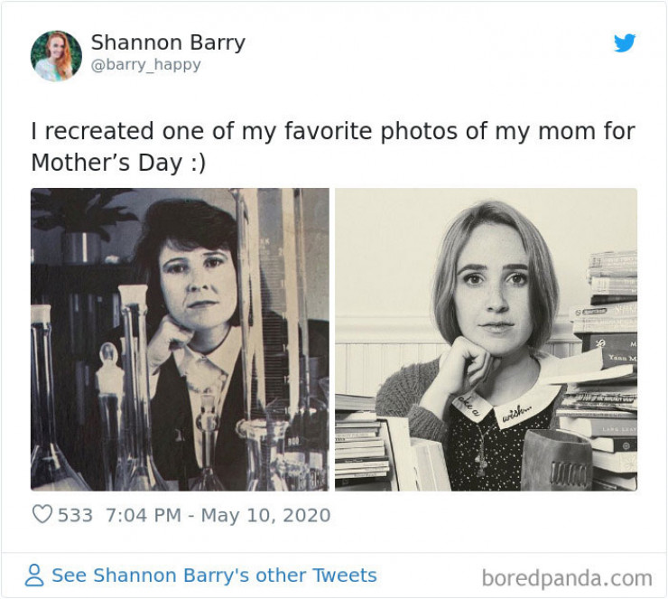 10 мая во многих странах отмечали День матери. В честь этого пользователи Twitter разместили в соцсети теплые коллажи. Дочери не только воссоздали снимки своих матерей, но и повторили образ их молодости. Эти кадры, сделанные с большим перерывом времени, показывают, как близкие люди похожи друг на друга.