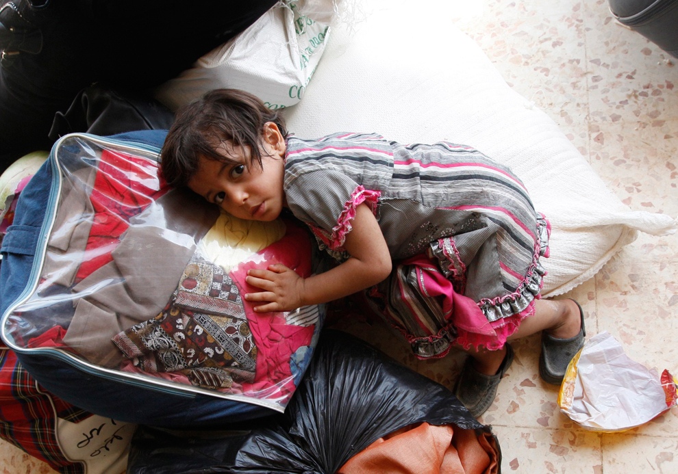Сирийская девочка лежит на вещах своей семьи в лагере для беженцев после пересечения иракско-сирийской границы, 24 июля 2012 года. (REUTERS/Saad Shalash)