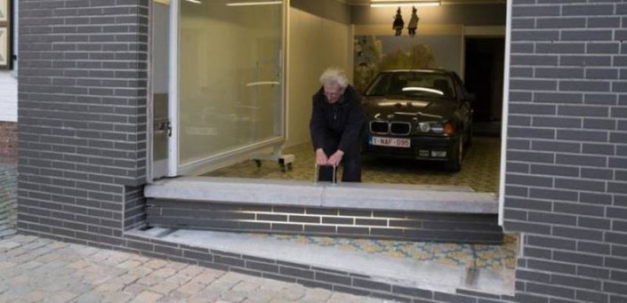 Этот невероятно изобретательный владелец помещения, в котором раньше размещался его магазин, живет в Бельгии. После того, как городские власти отказались выдать ему разрешение на строительство гаражных ворот, мотивируя это законодательным запретом изменять внешний вид фасадов зданий, он не стал отчаиваться.