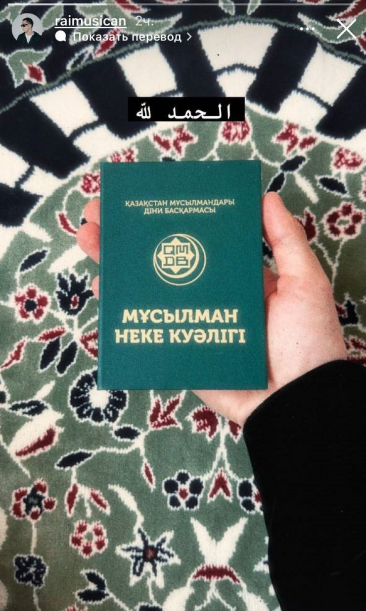 Раим также опубликовал в Stories Instagram выданный в мечети документ.