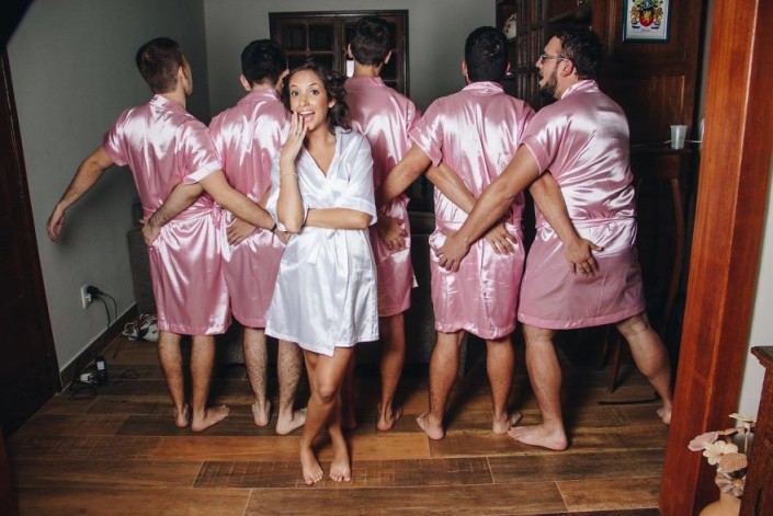 Буквально за неделю до торжества девушка подумала, а почему бы не пригласить своих друзей-айтишников. Парни поддержали будущую невесту и согласились прийти на ее девичник. Они нарядились в шелковые халатики, купили дешевый алкоголь, пластиковые стаканчики - все по-мужски, по-братски - и принялись позировать для фотосессии.