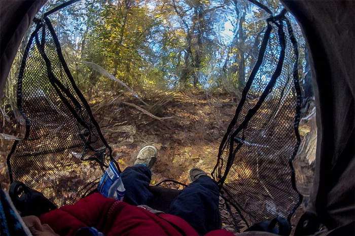 Камера была настроена так, чтобы делать фото каждые 10 секунд, и за несколько дней было сделано около 2000 снимков. В итоге получились снимки с низкого угла, а прозрачная крышка коляски послужила своеобразным фильтром.