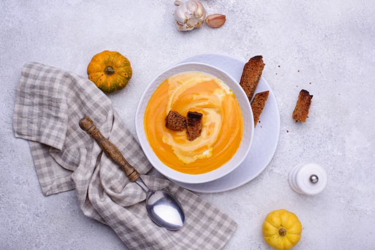 Если уж сильно хотите отведать крем-суп, можно попробовать крем-суп из цветной капусты, который все же содержит мало калорий и насыщенных жиров. Это также отличный способ увеличить потребление овощей. Можно обжарить лук-порей, сельдерей и цветную капусту с чесноком и хлопьями перца чили - будет вкуснее. Приготовьте сливочный суп не на сливках, а на растительной основе, тогда получите намного меньше насыщенных жиров.