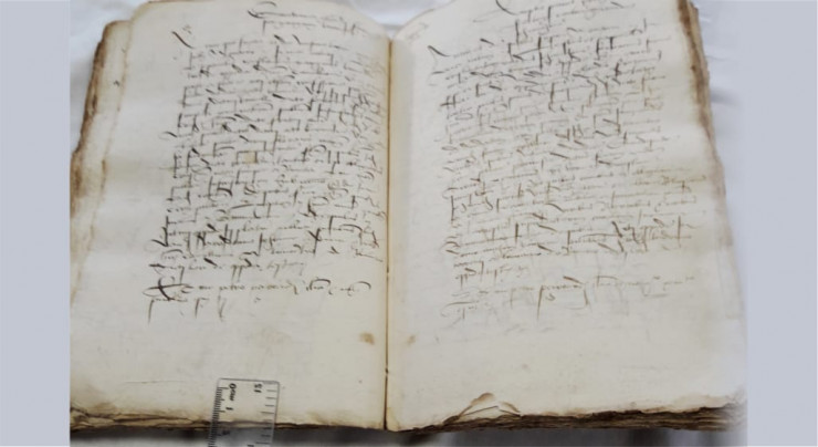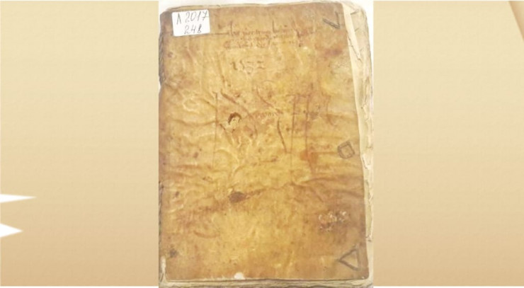 Следующей уникальной книгой является рукопись, переплет которой выполнен из человеческой кожи. Она датирована 1532 годом и написана на старолатинской графике. По мнению французских ученых, она завезена из Европы и содержит нотариальные записи из Северной Италии.