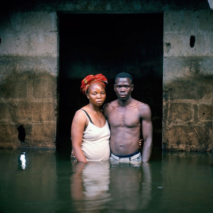 Нигерия, 2012. Семейная пара Хоуп и Виктор Америка у своего затопленного дома.