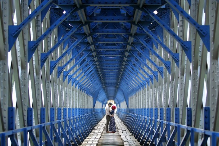 Фотосессия с помолвки возлюбленных на мосту Цирахон в Индонезии. @salimbhayangkara