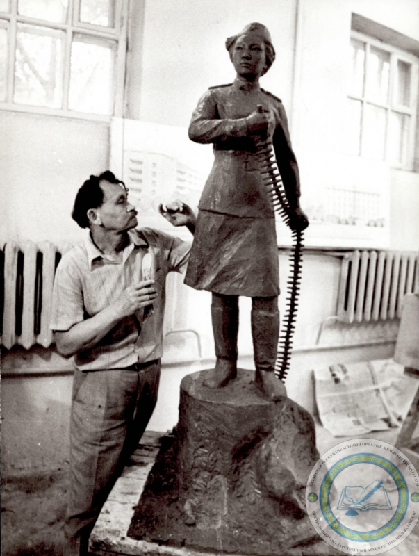 Хакимжан Наурызбаев за работой над памятником Маншук Маметовой