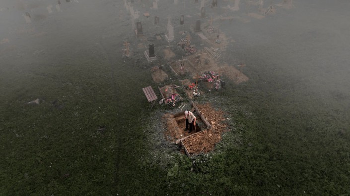 Туманное утро в Украине. Мужчина, копающий могилу на небольшом кладбище. @Davidedziegler (Испания), Дэвид Карбонелл