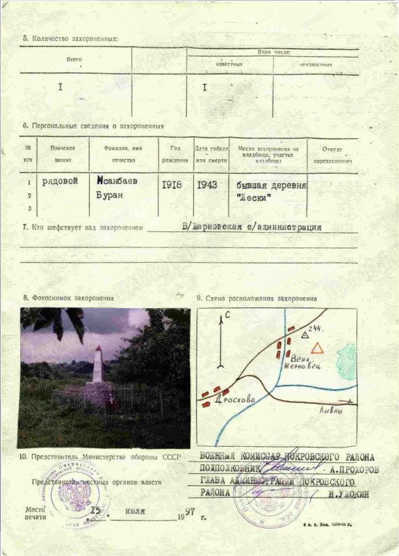 "Собрав все факты воедино, можно сделать вывод, что именно здесь был совершен подвиг Борана Нсанбаева и что здесь покоится тело Героя Советского Союза. Правда, однозначно утверждать это невозможно, ведь для проведения необходимой генетической экспертизы по установлению личности требуется проверить все останки, а это не один миллион рублей", - отмечается в сообщении.