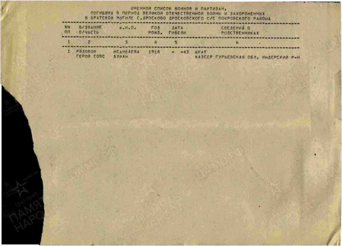 С фамилией героя тоже вышла путаница, ее считали труднопроизносимой, что усложнило поиски казахстанца. Даже в наградном листе его называют Исынбаевым.