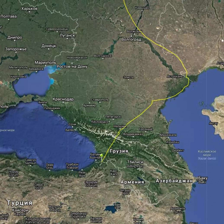Затем скопа направилась в сторону Каспийского моря, пролетев через Астраханскую область, где порыбачила и полакомилась свежей воблой, направилась в Грузию, а затем в Турцию.