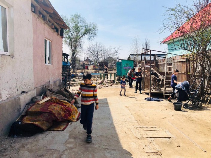 Семья живет в поселке Абай Алматинской области. О том, что в ней 19 детей, известно всем местным жителям. "Серые ворота", - сопровождают нас соседи по адресу. Калитку открывает обаятельный мальчуган лет десяти. Уже у входа слышен гул детских голосов. Двор просторный.  В клетке огромные псы. У порога жилья сонно зевают котята. Ребенок за руку проводит к маме.