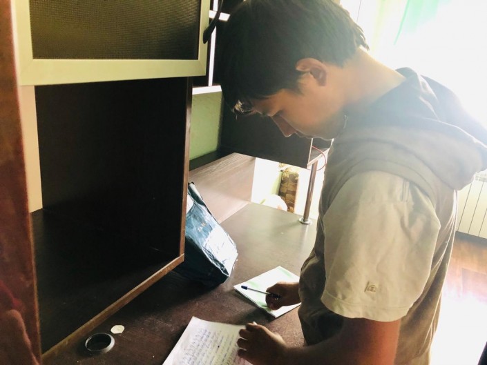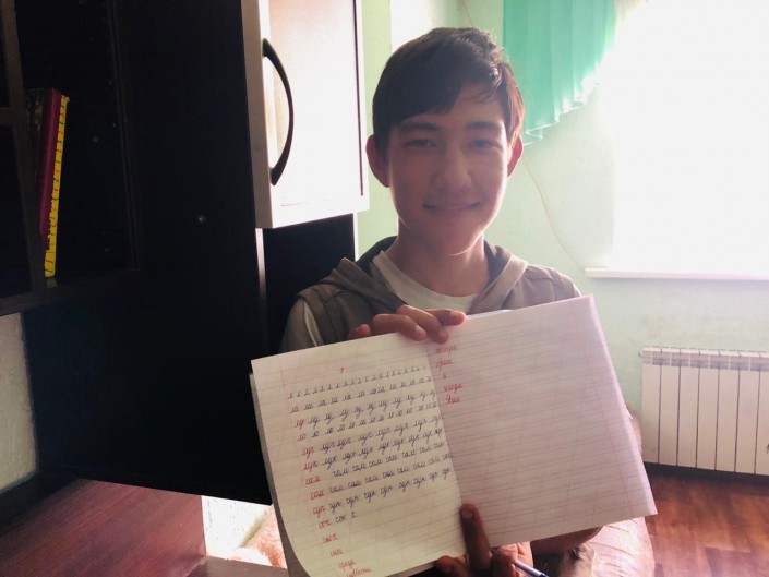"Руслану ставили много диагнозов. В последний раз сказали, что у него аутизм, хотели забрать в интернат. Просто он никогда нигде не учился, им вообще не занимались. Ребенок вполне способный и старательный.  Пусть медленно, но усваивает все. Покажи свой красивый почерк тете", - просит Руслана мама.