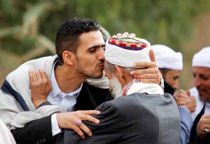 Обмен приветствиями после молитвы в священный праздник. Сана, Йемен.