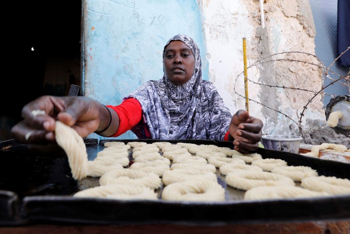 Несмотря на сложную обстановку в стране, сомалийцы отмечают праздник. На снимке женщина готовит традиционные пирожные и печенье в пекарне в честь праздника. Могадишо, Сомали.