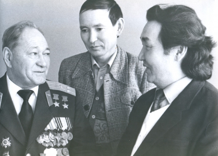 "Он нарисовал Чапаева на коне и занял первое место. Тогда за победу папе подарили кусок красного полотна. Его дяде предложили развивать талант юнца и отправить учиться в художественное училище. Тот не стал противиться. Провожали в большой город юношу всем селом, кто в дорогу испек ему хлеб, а кто дал денег на карманные расходы. И вот он прибыл в Алма-Ату, которая сразу покорила его сердце изумительной архитектурой и величественными горами. Те годы (1943-1949), несмотря на трудности военной поры, отец вспоминал с улыбкой. Ведь здесь он встретил свою любовь всей жизни - мою маму - и исполнил все свои заветные желания", - говорит Арыстан Жанатаевич.