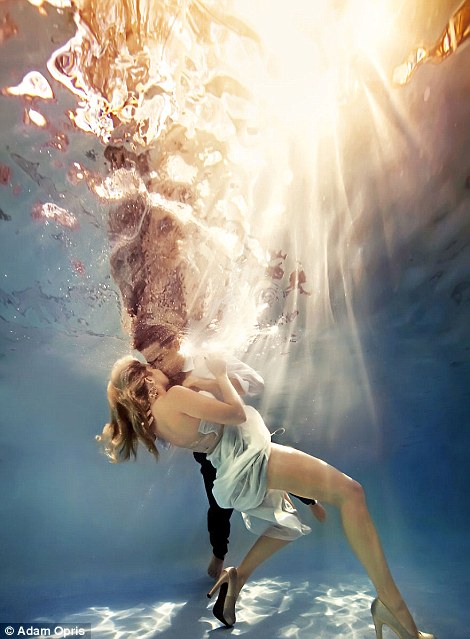 Американский фотограф Адам Оприс делает необычные снимки влюбленных пар. Для того, чтобы придать кадрам эффект невесомости, он проводит съемку под водой. Как отмечает издание Daily Mail, необычные условия фотосессии совмещены с традиционной композицией в виде вечерних нарядов и воздушных шаров.