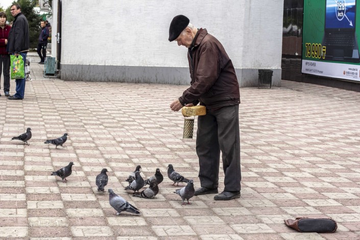 "Дедушка кормит голубей". Автор - Нургали Алибаев