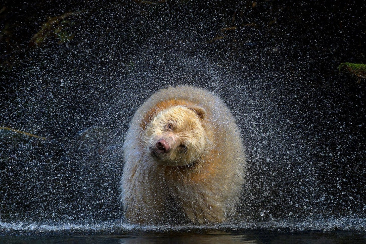 Работа Мишель стала победителем в категории "Земная жизнь". Для этого впечатляющего снимка фотограф выжидала, когда медведь вынырнет из воды и стряхнет воду со своей шерсти. Вальберг также сказала, что, после того как медведь стряхнул с себя воду, он на мгновение встретился с ней взглядом.