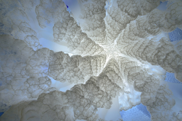 Снимок выглядит как произведение искусства, картина с облаками. Но на самом деле это фотография щупалец бочкообразной медузы, видимых из-под поверхности и освещенных солнцем. Работа стала победителем в номинации "Искусство природы". С помощью подсветки Фитор смог запечатлеть щупальца медузы в деталях.
