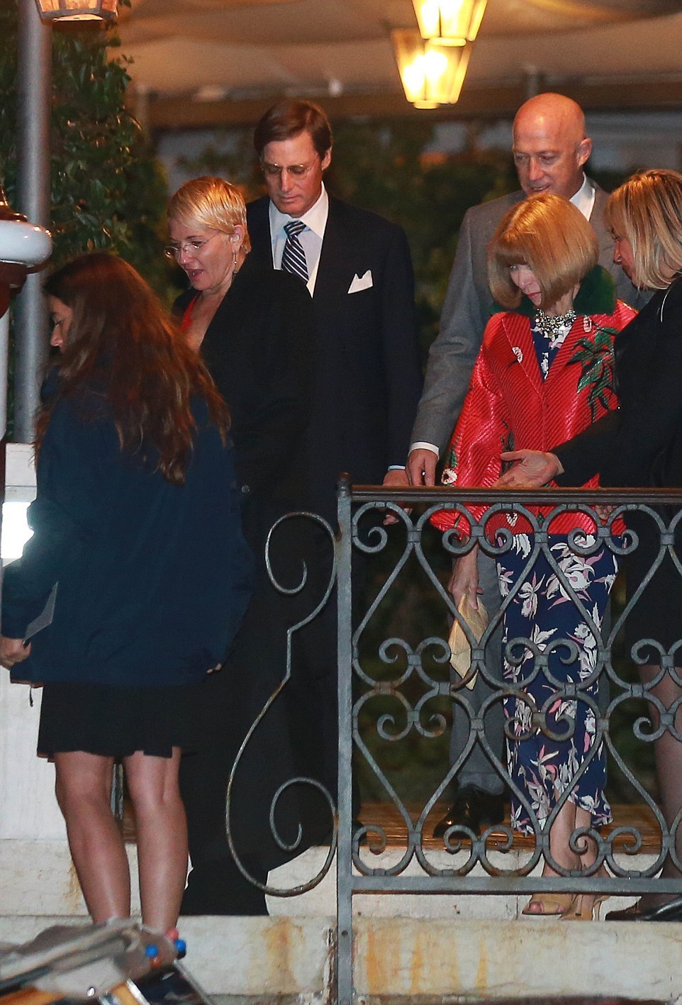 Главный редактор журнала Vogue выходит из отеля Cipriani.
