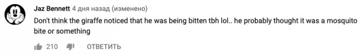 В комментариях к ролику пользователи порадовались за жирафа и восхитились его хладнокровием.