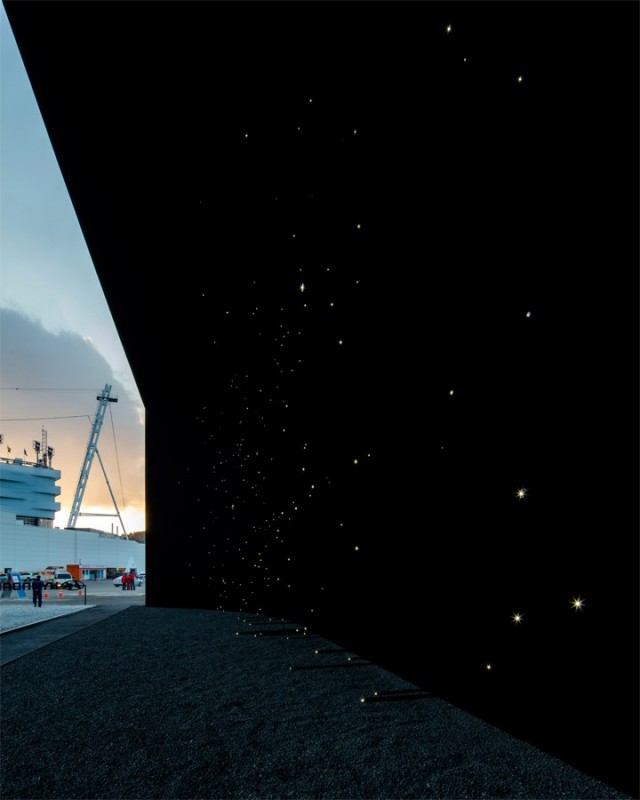 В преддверии зимних Олимпийских игр в Пхенчхане построили необычный павильон, фасад которого покрыт материалом Vantablack, поглощающим 99 процентов света. На сегодняшний день он является самым черным в мире веществом, посему южнокорейское сооружение уже назвали "самым черным зданием на планете".