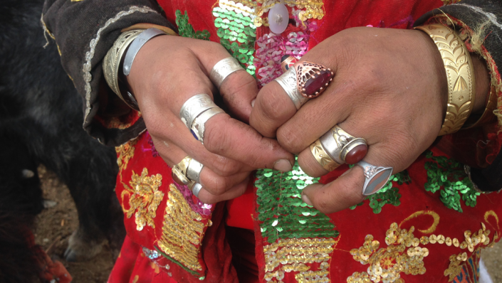 Обручальных колец памирские кыргызы не носят: до свадьбы женщины носят красный платок, после замужества меняют его на белый (и снимать его нельзя), а женатые мужчины, в свою очередь, надевают шапку с красивой кистью.