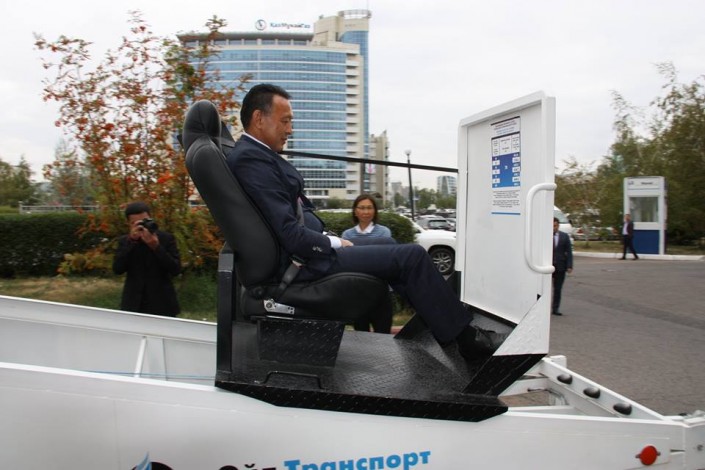 Симулятор ремней безопасности конвинсер был разработан по заказу КМГ. Принцип действия тренажера следующий: человек усаживается в водительское кресло, пристегивается, после чего в низкоскоростном режиме (до 10 километров в час) следует удар в импровизированное препятствие. По данным организаторов презентации, как правило, отношение работников к использованию ремней безопасности после подобного тестирования резко меняется - сила столкновения убеждает лучше любых лозунгов и правил.