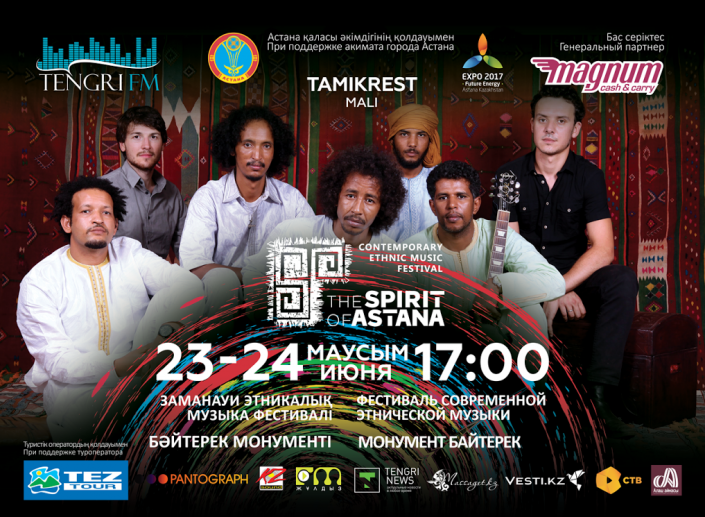 "Группа бедуинов из Сахары Tamikrest - это мощный сплав драйва рок-музыки и традиционных арабских песнопений, которые обычно используют туареги и бедуины, проживающие на территории Сахары", - рассказал генеральный продюсер фестиваля The Spirit of Tengri и радиостанций "Жұлдыз FM" и Tengri FM Жан Кастеев.