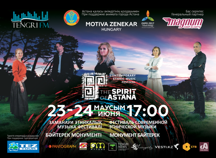 Также гостей фестиваля The Spirit of Astana порадует венгерская группа Motiva Zenekar, которая привезет в Астану программу, включающую в себя наследие тюрков. "Привет из Венгрии! Как участник группы Motiva Zenekar, я счастлива пригласить вас на фестиваль The Spirit of Astana, который пройдет 23 и 24 июня в Астане, на площади перед монументом "Байтерек". Приходите и насладитесь венгерским духом и венгерской музыкой", - сказала в своем приглашении венгерская певица Ковач Нори.