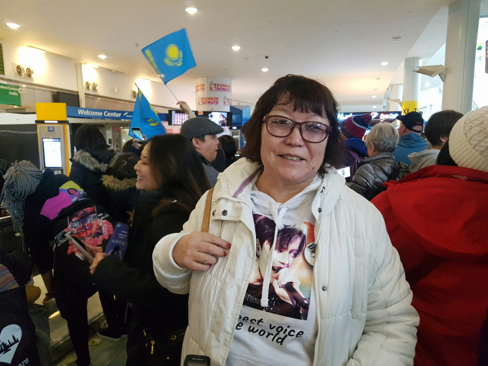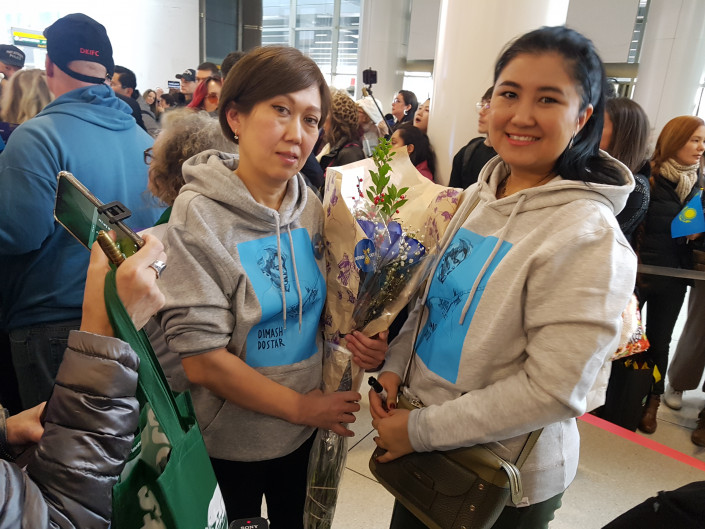 Вслед за Димашем из Санкт-Петербурга в Нью-Йорк прилетела его фанатка Екатерина. Решив порадовать артиста, она надела камзол с казахскими орнаментами и показала тетрадь, куда записывает его песни.