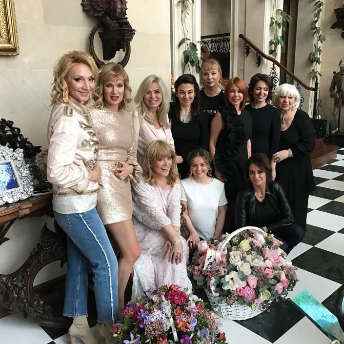 В доме певицы собрались композитор Игорь Николаев с женой певицей Юлией Проскуряковой, актриса Олеся Судзиловская, дизайнер Валентин Юдашкин с женой Мариной, дочь Кристина Орбакайте с мужем Михаилом Земцовым и детьми Дени Байсаровым, Никитой Пресняковым и Клавдией Земцовой.
