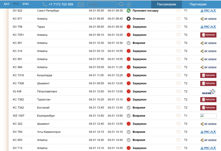 Авиакомпания Air Astana также предупредила пассажиров, что из-за неблагоприятных метеорологических условий на территории всей страны возможны задержки и отмены рейсов.