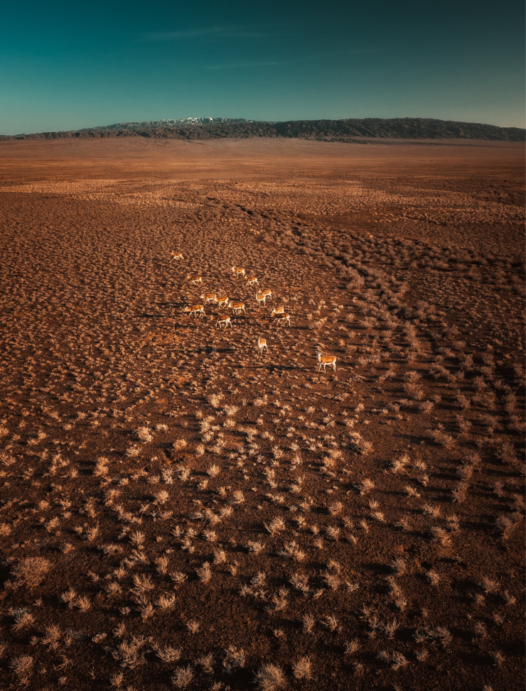 "Мне повезло. Вдалеке увидел маленькую стаю джейранов, решил заснять их на дрон, одна стая маленькая привела меня к еще большей, они слились и получились кадры с огромной стаей. Это огромная редкость, нечасто можно их застать", - делится Александр Кузнецов.