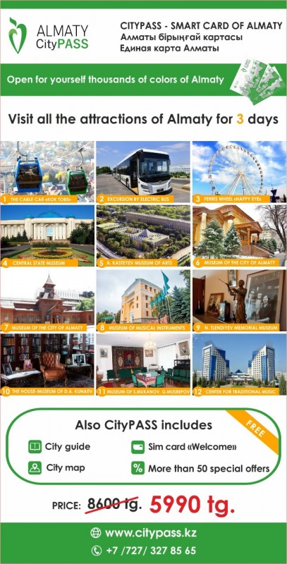 Стоимость Almaty CityPASS составляет 5 990 тенге.