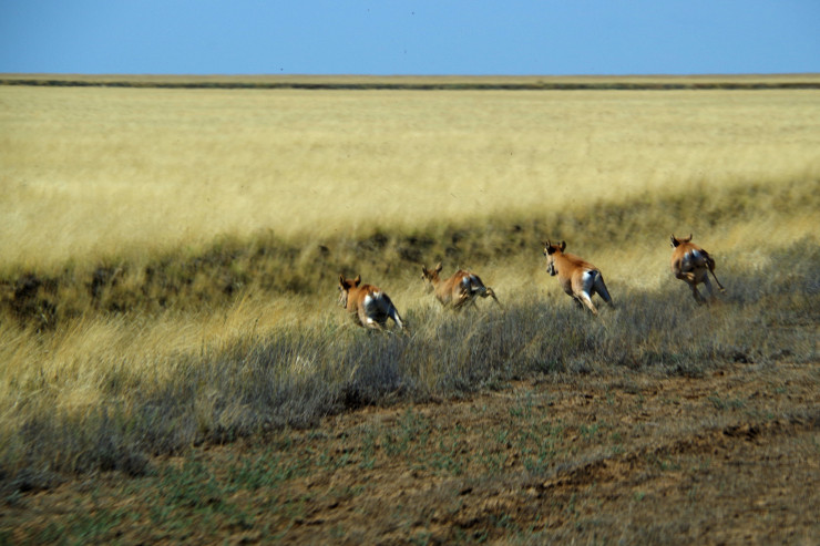 Дорога до села Урпек по грейдерам разной степени паршивости прошла в многочисленных встречах с большой и хищной орнитофауной, а также стадами сайги, периодически перебегающими наш путь. К сожалению, слишком быстро перебегающими, поэтому нормальных фотографий сего процесса у нас ни разу не получилось.
