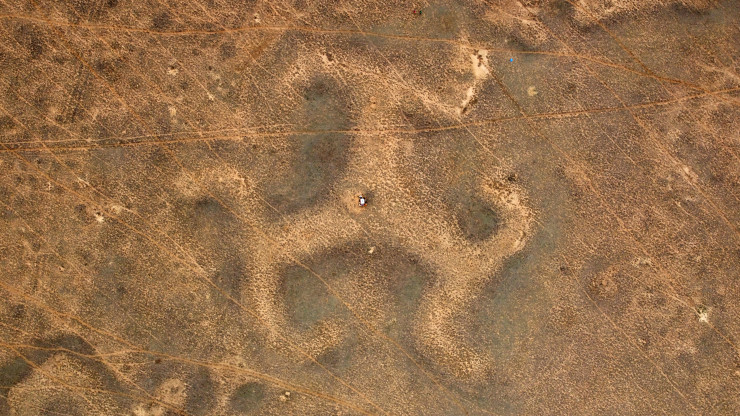 Нашей целью в окрестностях Урпека была знаменитая Торгайская свастика - огромный геоглиф в форме трискеля. Наверное, никто не сможет с полной уверенностью сказать, кто, когда и с какой целью сооружал подобное, видимое лишь с высоты птичьего полета.