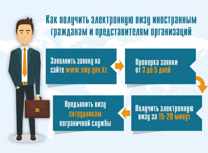 Ранее для этого организаторам поездки приходилось собирать документы, а гостю - лично приезжать в посольство Казахстана в его стране. После этого в течение 30 дней предоставлялся ответ. Сейчас, как сообщили в МВД Казахстана, услугу можно получить в течение 5 дней на визово-миграционном портале www.vmp.gov.kz.