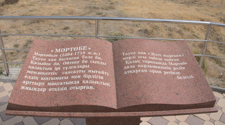 Холм Мартобе по праву заслуживает статуса родины казахского степного парламента. Как считают историки, "на земле казахской много высот, но Мартобе - одна". По их мнению, именно здесь хан Тауке поставил печать на первом записанном своде степных законов "Жеті Жарғы".