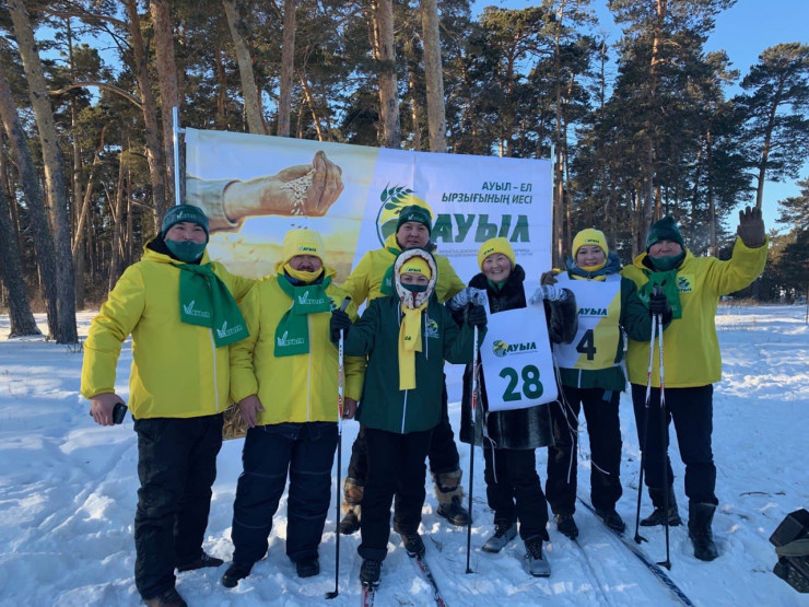 Также группа членов партии "Ауыл" организовала между собой соревнования на лыжах.