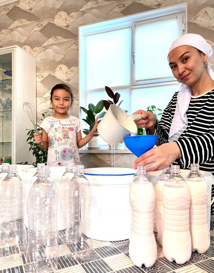 "Изначально я использовал козье молоко только для лечения сына. Позже это переросло в семейный бизнес. Траву для коз мы заготавливаем посредством специального гидропонного устройства, а корм приобретаю в разных городах, например, ячмень мы поставляем из Уральска. Доение козы происходит при использовании специальных современных технологий, из полученного молока изготавливается сметана, творог, йогурт", – сказал Кусаинов.