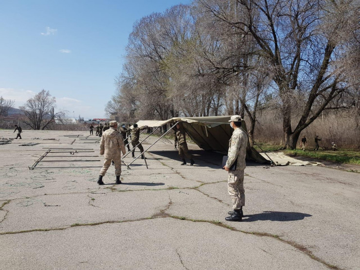 "У нас курсанты участвуют в патрулировании города, поэтому на всякий случай был развернут стационар для изоляции контактных. Работать будут наши медики. Полевой карантинный стационар развернут на 100 койко-мест", - сказал медицинский работник академии Канат Жакиянов.
