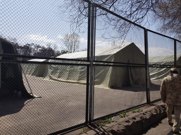 В целях своевременного реагирования на возможные изменения эпидемиологической обстановки в Пограничной академии КНБ, связанного с ежедневным выделением личного состава для участия в патрульных мероприятиях в Алматы и возможной временной изоляцией контактных с больными КВИ военнослужащих переменного состава, на основной базе академии развернут полевой карантинный стационар.