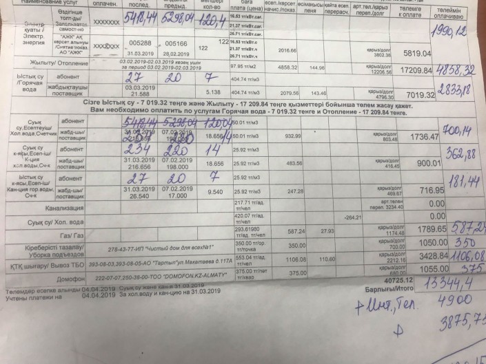 - түбіртекте алдыңғы айдағы тарифтер қосылып кетуі мүмкін (бірақ ол төленіп қойса, пәтер иесі шотты апарып көрсетуі қажет).