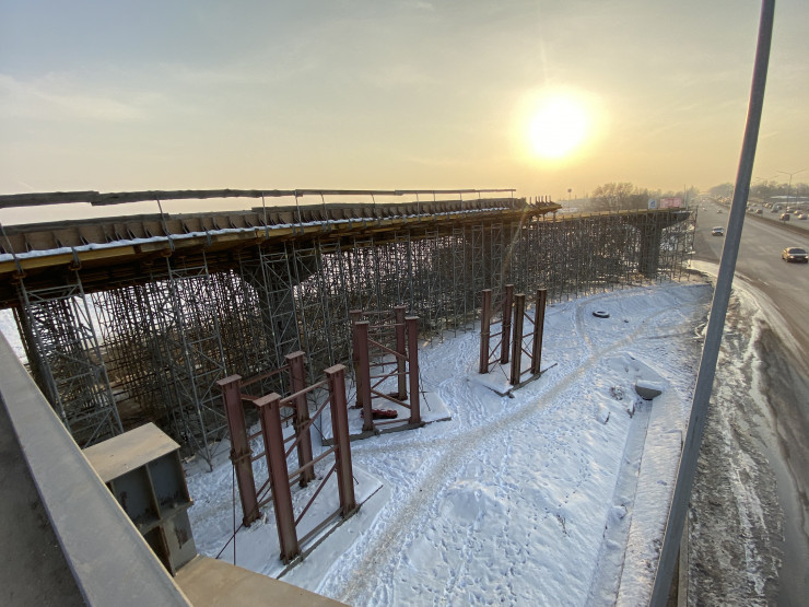Так выглядит недостроенная эстакада возле ЖК "Асыл Арман" сейчас. Февраль 2022 года. Фото ©Айнаш Ондирис